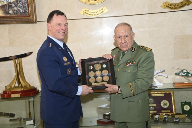 A cette occasion, le Général d’Armée a prononcé une allocution dans laquelle il a souhaité la bienvenue au Commandant de l’Africom, soulignant que sa visite s’inscrit comme un nouveau maillon dans le renforcement du processus de coopération bilatérale. « Tout d’abord, je tiens à vous souhaiter la bienvenue, ainsi qu’à la délégation qui vous accompagne, à l’occasion de votre visite en Algérie, laquelle s’inscrit, sans nul doute, comme un nouveau maillon dans le renforcement du processus de coopération bilatérale, particulièrement après la signature en janvier 2025 du mémorandum d’entente dans le domaine de la coopération militaire », a déclaré le Général d’Armée. « A cet égard, nos pays œuvrent dans le sens de l’approfondissement de notre dialogue stratégique, afin de promouvoir notre coopération militaire à travers, notamment, la concrétisation de ce mémorandum d’entente, dans toutes ses dimensions et objectifs, de manière à asseoir les bases d’une coopération forte et durable, fondée sur le respect mutuel et au service des intérêts des deux pays », a-t-il ajouté. Le Général d’Armée a souligné que « l’Algérie, mandatée par l’Union africaine, œuvre au renforcement des mécanismes de l’initiative panafricaine commune, visant à fédérer les efforts pour l’éradication du phénomène du terrorisme et de l’extrémisme violent, dans tous ses aspects ». « L’Algérie, agissant sur mandat de l’Union Africaine, œuvre au renforcement des mécanismes de l’initiative panafricaine commune, visant à fédérer les efforts pour l’éradication du phénomène du terrorisme et de l’extrémisme violent, dans tous ses aspects ». A la faveur de ce rôle actif et dynamique, a ajouté le Général d’Armée Chanegriha, « l’Algérie a pu lancer de nombreuses initiatives au niveau du continent, en adoptant une approche sécuritaire multidimensionnelle de lutte contre le terrorisme, qui repose principalement sur l’activation d’un fonds financier africain dédié à cet objectif, l’établissement d’une liste africaine des personnes et des entités impliquées dans des activités criminelles, et l’élaboration d’un mandat d’arrêt africain ». Et d’ajouter : « Il y a lieu également de faire mention des rapports annuels présentés par M. Abdelmadjid Tebboune, président de la République, Chef Suprême des Forces Armées, ministre de la Défense nationale, en sa qualité de Coordinateur de l’Union Africaine pour la lutte contre le terrorisme et l’extrémisme violent ». De son côté, « le Général d’Armée Dagvin Anderson a exprimé sa satisfaction de sa visite en Algérie et son aspiration à consolider les relations de coopération militaire », a noté la même source ajoutant qu' »il s’est également félicité du niveau de coordination multidimensionnelle entre les deux parties et de la contribution de l’ANP à l’instauration de la sécurité et de la paix dans la région ». Au terme de cette rencontre, les deux parties ont échangé des présents symboliques, avant que le Commandant de l’Africom ne signe le livre d’or de l’Etat-major de l’ANP, conclut le communiqué du MDN.