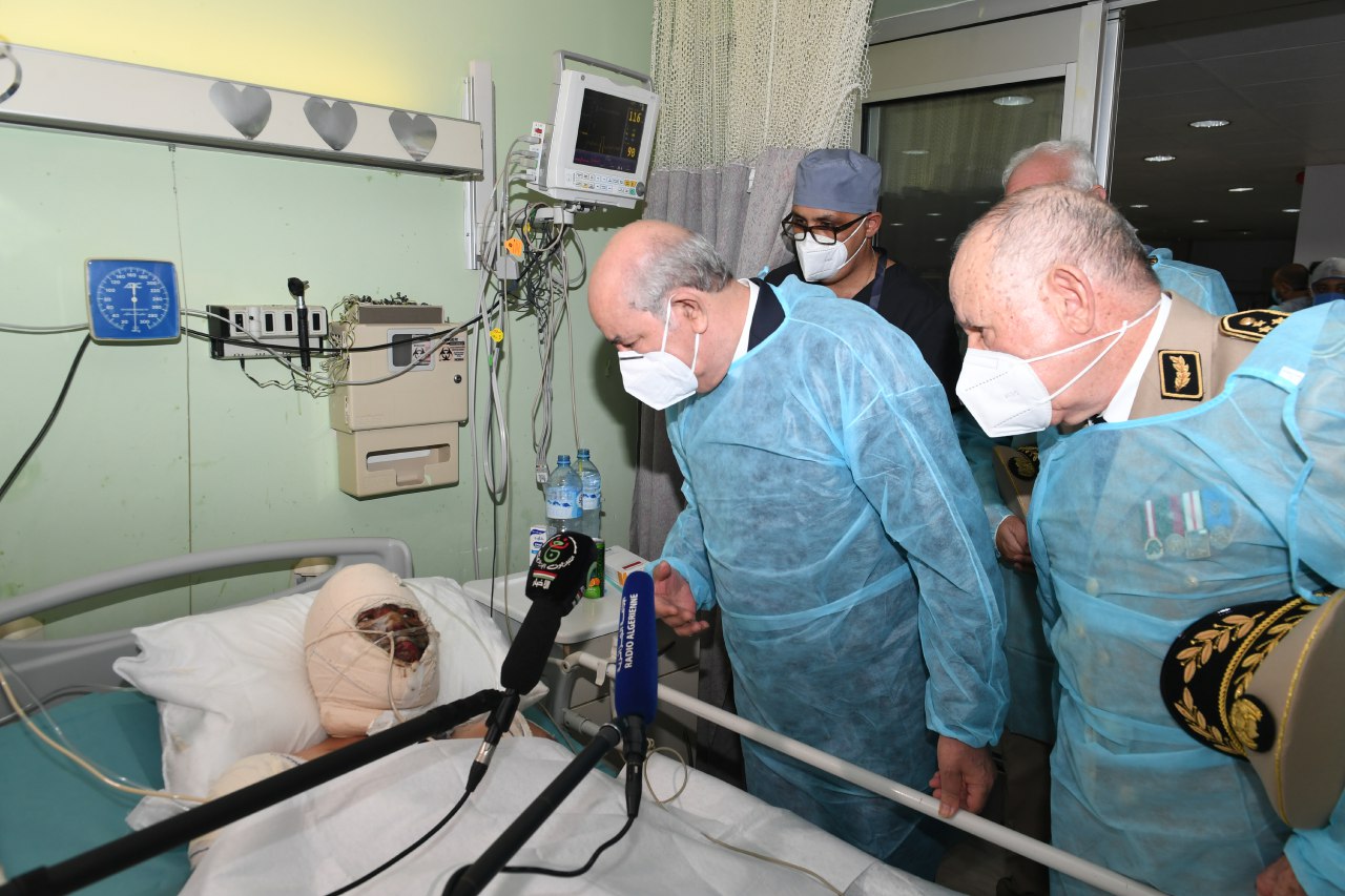 Le président de la République, Abdelmadjid Tebboune, s’est rendu, samedi, au chevet des brûlés civils et militaires hospitalisés à l’Hôpital militaire de Aïn Naadja et à l’Hôpital de Douéra (Alger), victimes des feux de forêts qui ravagent depuis lundi dernier plusieurs régions du pays.