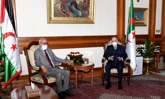 Accueil ACTUALITÉ Le Président Tebboune reçoit son homologue sahraoui ACTUALITÉ Le Président Tebboune reçoit son homologue sahraoui 25 février 2021 0 FacebookTwitterPinterestWhatsApp Le président de la République, Abdelmadjid Tebboune, a reçu jeudi à Alger, le président de la République arabe sahraouie démocratique (RASD), Brahim Ghali. L’audience s’est déroulée au siège de la présidence de la République. R. N.